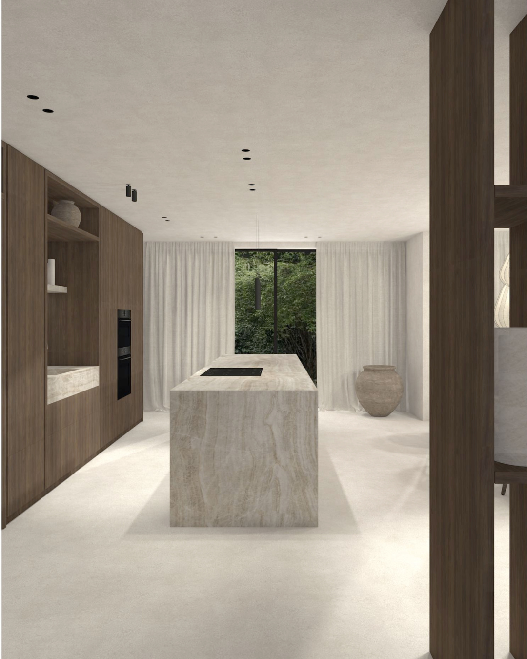 Een subtiele overgang tussen verschillende functies zorgt voor verbondenheid, waarbij de ruimte op een natuurlijke manier in balans komt